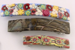 Please click on an image below to see examples of barrettes. Contact me if you are interested in purchasing a barrette similar to the ones shown.