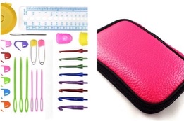 Style 2 comes in a zipper pouch with stich markers and other items. The handles range from 3.0 to 6.5 with a total of 8 hooks.